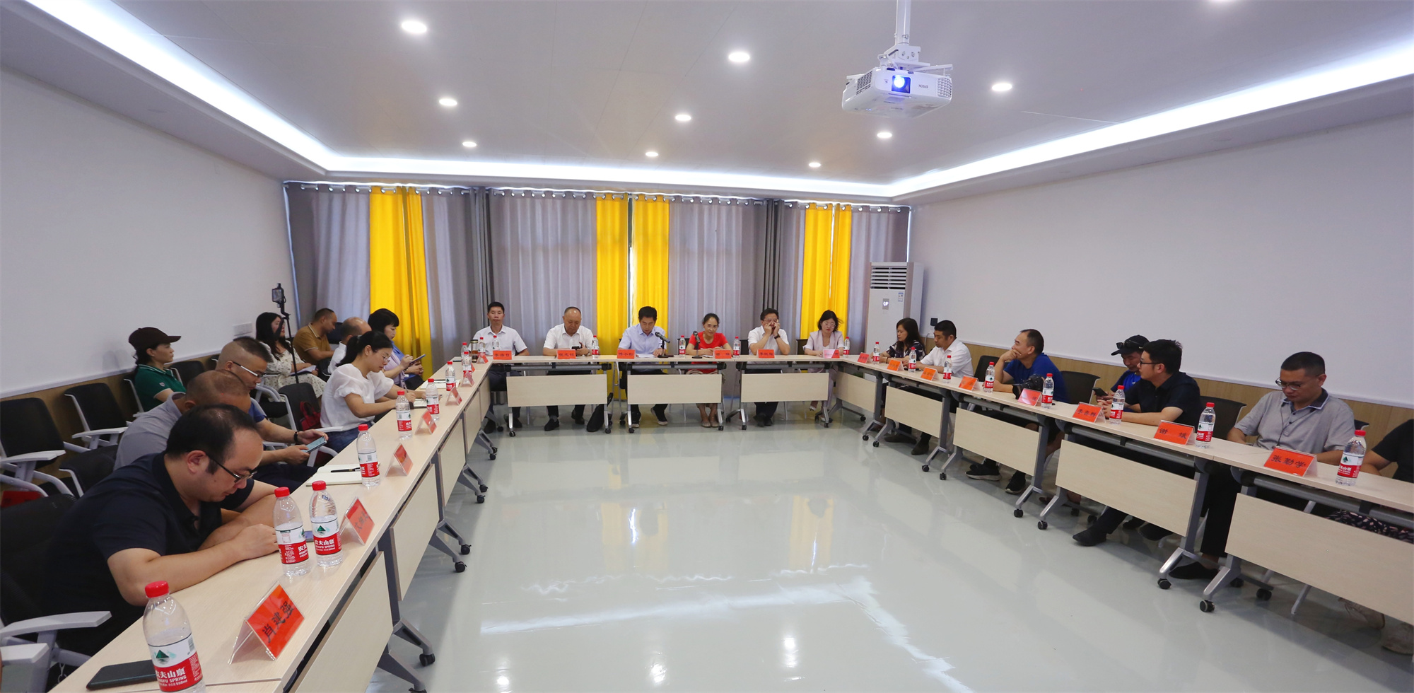 婁底龍騰文化旅游發展有限公司董事長龍國盛、營銷部長吳夸,分別介紹了公司有關情況和龍騰水府生態園水上運動、湖景民宿、輕奢營地、無邊泳池、研學教育、燈光秀等重點特色項目。