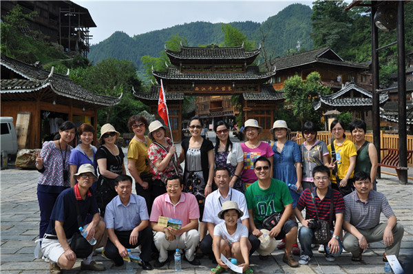 7月8日,考察團成員在千戶苗寨合影