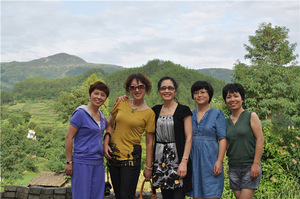 市政協副主席、民盟婁底市委主委邵瑛(中)和女盟員合影