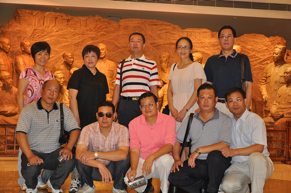 考察團成員在中國民主黨派歷史陳列館內“毛澤東在重慶”群雕前合影留念