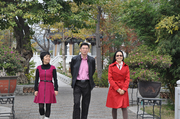 惠州學(xué)院彭永宏院長(zhǎng)(中)陪同婁底市政協(xié)邵瑛副主席(右)一行考察惠州城市建設(shè)(張斐攝)