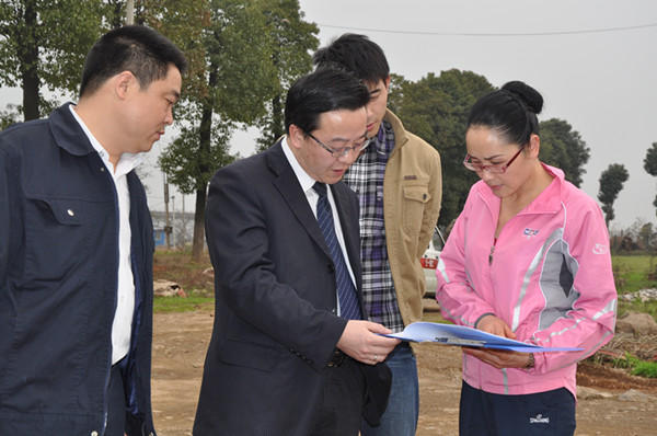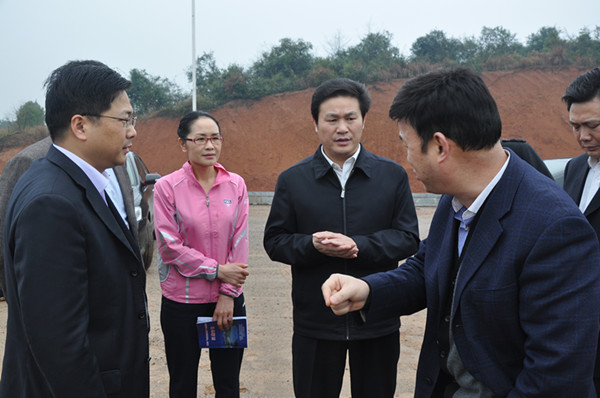 3月29日,市人大常委會主任易春陽(右2),市政協(xié)副主席、民盟市委主委邵瑛(左2)一行到萬寶新區(qū)調(diào)研城建工作。