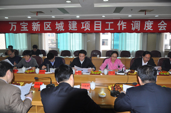 3月29日,市人大常委會主任易春陽(右3),市政協(xié)副主席、民盟市委主委邵瑛(右2)等領(lǐng)導(dǎo),主持召開萬寶新區(qū)城建項目工作調(diào)度會。