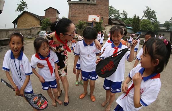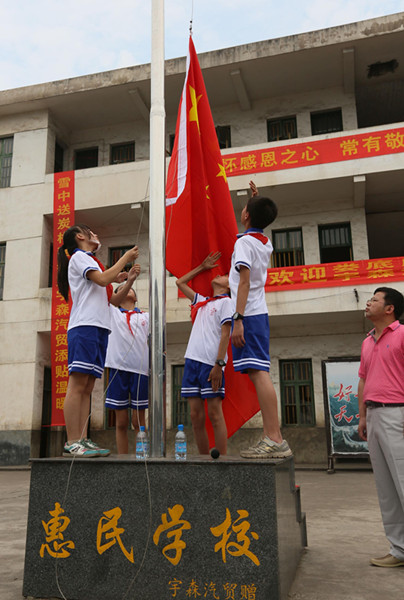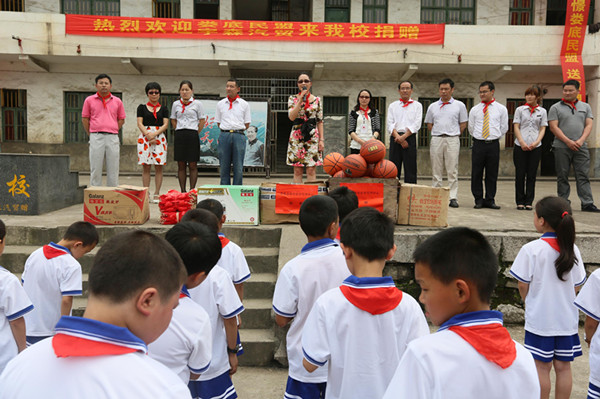 當日,邵瑛一行在惠民學校舉行了簡單的捐贈儀式,將凝聚著民盟婁底市委、婁底宇森汽貿、婁底市體育彩票管理中心濃濃愛心的價值3萬余元的校服、圖書及文體用品捐贈給了留守兒童,并與孩子們一起高唱《我們是共產主義接班人》。邵瑛、潘杰等還與孩子們一起玩了籃球投籃比賽。