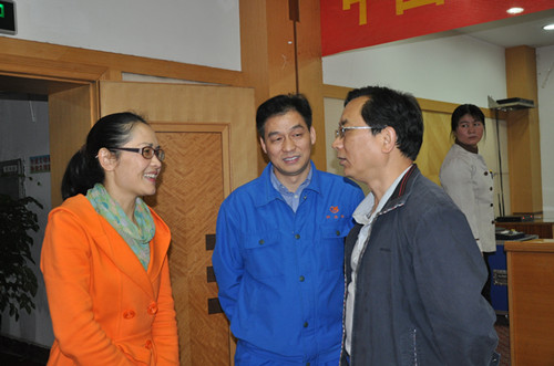 邵瑛(左)和張毅(右)、郭勇軍(中)等親切交談