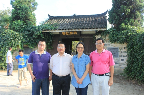 邵瑛(右2)一行在張治求(左2)等陪同下參觀魏源故居。彭育峰攝影。