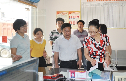 7月19日,邵瑛(右1)一行考察婁星區雙江鄉人力資源和社會保障勞動服務站。