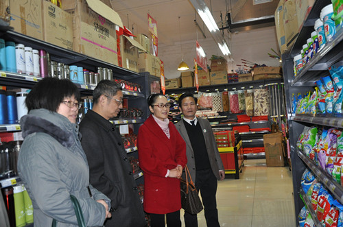 邵瑛(右2)等在鄉村驛站購物超市視察