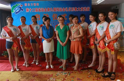 邵瑛(前排中)與禮儀形象大使選手在湖南省第12屆省運(yùn)會禮儀形象大使選拔賽啟動儀式上合影