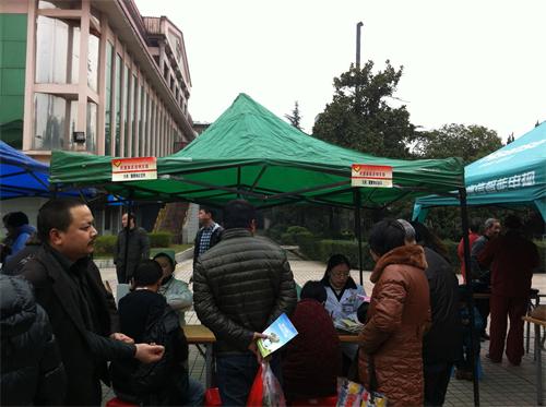 3月8日上午,春寒料峭,可漣鋼體育館門前卻人來人往,熙熙攘攘,熱鬧非凡。百多米長的雨棚下,擺上了各種攤位、服務臺。這不是在趕集,而是在開展學雷鋒義務服務活動。民盟漣鋼支部盟員發揮自己長處,組織了一支“義診、健康咨詢”隊伍,參與其中。支部委員曾金蘭、易俊、李少良、陳勇榮負責組織、后勤、發放健康知識資料;支部委員劉禮義醫師率領婁底第一人民醫院朱志超、曾求明、彭培艷、毛志群等盟員醫務工作者,義務為市民看病、測血壓、測血糖、測血型、回答健康知識咨詢。前來就診、咨詢、領取資料的市民絡繹不絕,讓人員應接不暇。