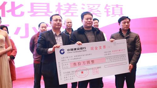 朱偉(左)代表中縱聯聯向新化槎溪鎮聯聯希望小學捐款30萬元