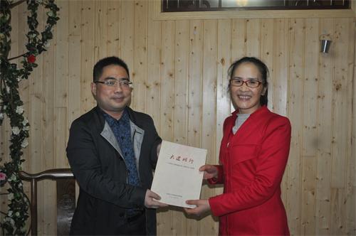 邵瑛(右)向鄧曙光(左)贈送《大道同行》