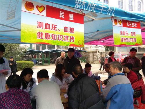 3月4日,春雨淅瀝,漣鋼體育館門前人來人往,熱鬧非凡。百多米長的雨棚下,擺上了各種攤位、服務臺。民盟漣鋼支部組織的“義診、健康咨詢”服務隊周圍,圍滿了前來看病、咨詢的居民群眾。支部委員曾金蘭、易俊、陳勇榮負責組織、后勤、發放資料;支部委員劉禮義醫師率領婁底市第一人民醫院盟員醫師及入盟積極分子,進行義診、測血壓、健康知識咨詢。大家忙得不亦樂乎。