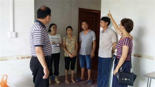 盟員吳芙蓉(右1)深入扶貧村察看洪災中受損房屋
