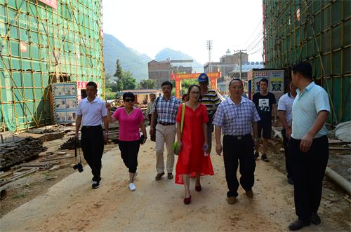 傅紹平(右1)、邵瑛(右3)聽取仙人洞村民俗村規劃建設情況匯報
