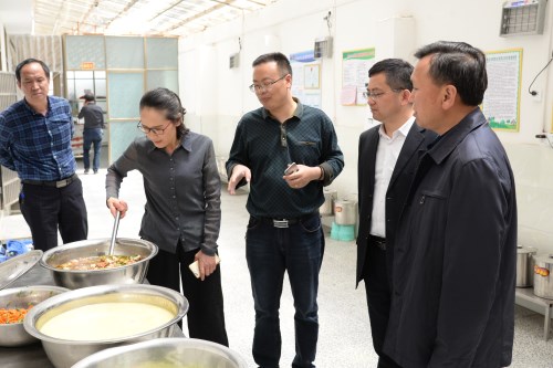 邵瑛(左2)察 看雙峰縣三塘鋪鎮(zhèn)中心小學(xué)食堂