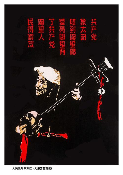 姜新民火烙套色剪紙作品《人人愛唱東方紅》