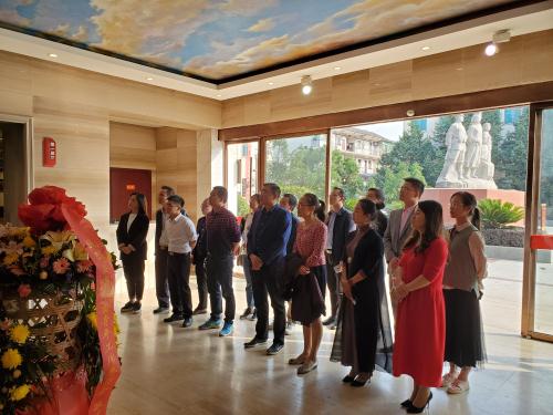 青委會一行來到蔡和森紀念館廣場,舉行了莊嚴的悼念儀式,緬懷革命先烈,并向“蔡和森同志光輝一家”敬獻花籃。