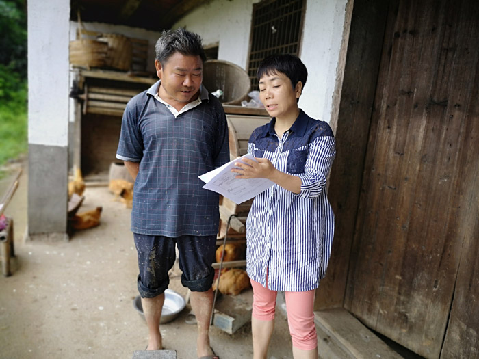7月14日-15日,邵瑛一行再赴毛坪村,督查7月10日發(fā)現(xiàn)的問題是否整改到位。在村委會,邵瑛一行和村支兩委的同志一起查看資料;在老王家,王紅貴和老王媳婦一起整理衣服,要求她以后碗筷要及時清洗,衛(wèi)生要每天打掃;在老陳家,邵瑛贊揚(yáng)了老陳勤快肯干,整個廳屋收拾得干干凈凈,給人煥然一新的感覺,并要求他把雞圍在后山養(yǎng),既便于收集雞糞,又確保屋前屋后衛(wèi)生。