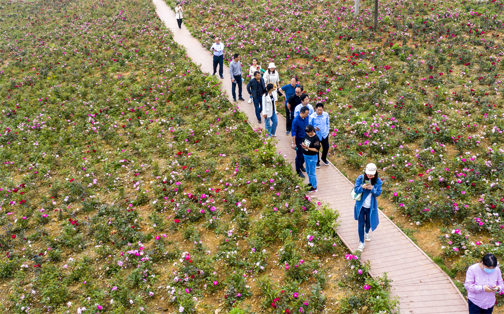 隨后,調研組一行在曾國良等陪同下,實地調研了錫礦山生態修復實施情況。看到礦區干凈整潔、環境優美,山上空氣清新、綠意盎然,“玫瑰愛琴海”、“萬馬奔騰”、“海枯石爛”、“紅軍亭”等景點成為網紅打卡點,盤山公路平整寬闊,沿途芳草萋萋、鮮花盛放,曾經滿目瘡痍的錫礦山重披綠裝、煥然一新,青年盟員們紛紛驚嘆不已。