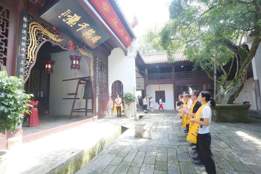 26日,盟員們來到岳陽汨羅屈子祠鎮,參觀了屈子祠、屈子文化園,回顧偉大的愛國詩人屈原晚年在汨羅居住、創作、沉江的生平經歷,重溫屈子光耀日月的行吟美句,領略其上下求索、遺世獨立的精神和品質,弘揚其清廉美德和愛國主義精神。在屈子祠“祭屈儀式”上,大家屏息凝神,祭拜行禮,表達對屈原的無限敬仰和懷念之情。大家還欣賞了民盟中央原主席楚圖南的題詞。