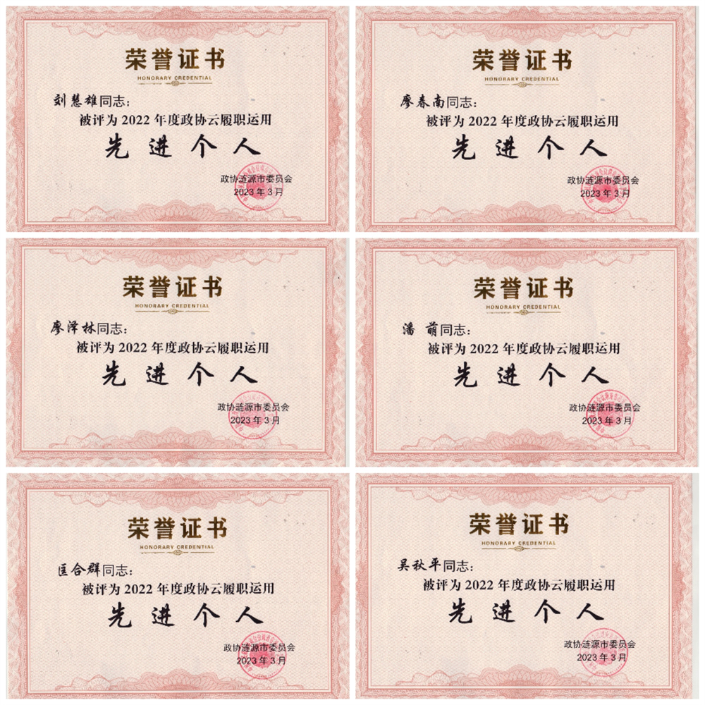 據悉,民盟漣源市委會在2022年度強化責任擔當、積極履職盡責,一年來履職成果豐碩,多項工作還獲湖南省政協、婁底市政協的表彰。其中漣源市政協民盟界別委員工作室榮獲“第二批湖南省示范性政協委員工作室”稱號,李海日、曾芝紅、廖澤林、肖建強獲評湖南省“政協云運用工作先進個人”,曾芝紅、吳秋平榮獲湖南省“云寶曬技能第三季活動先進個人”。李海日、吳秋平兩位盟員獲評婁底市“優秀政協委員”,李海日撰寫的《關于加快發展婁底通用航空產業的建議》獲評婁底市“2022年度優秀個人提案”,肖建強撰寫的《整治學校周邊違規租售手機行為刻不容緩》獲評婁底市“優秀社情民意信息”,李海日、吳秋平獲評“政協云運用工作先進個人”。