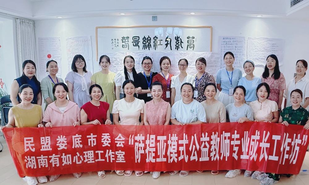 7月26-30日,民盟婁底市委會聯合盟員彭有如創辦的湖南有如心理工作室舉辦了一期“薩提亞模式公益教師專業成長工作坊”。來自婁底多所學校的17名教師,參與了這場為期五天的培訓學習。