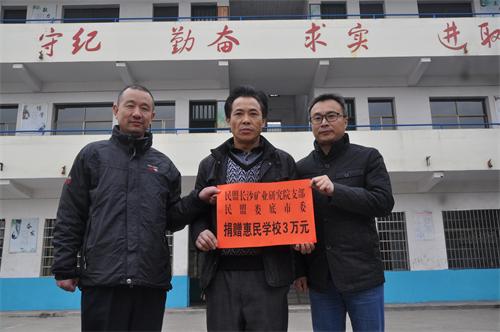 民盟婁底市委和民盟長沙礦冶研究院支部共同為惠民學(xué)校新建的青少年宮捐贈3萬元。中共長沙礦冶研究院副院長李茂林,民盟長沙礦冶研究院支部主委龔文勇等9人,對口支助9個貧困學(xué)生,給每個孩子捐助1000元學(xué)雜費和生活費。帶隊前來的長沙礦冶研究院黨群工作部部長闕鋒說,黨盟合作情系貧困學(xué)生的故事在長沙礦業(yè)研究院引起了良好的反響,今年又有3個同志主動加入了黨盟合作開展“燭光行動”。