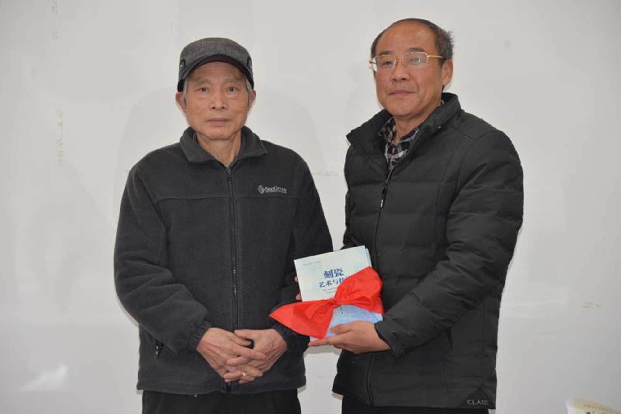 歐陽吉華(左)向學校捐贈《刻瓷藝術與技法》
