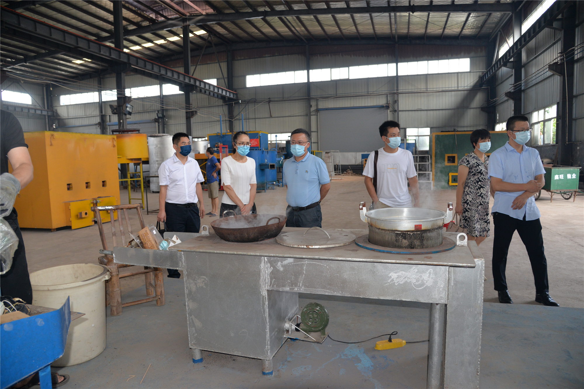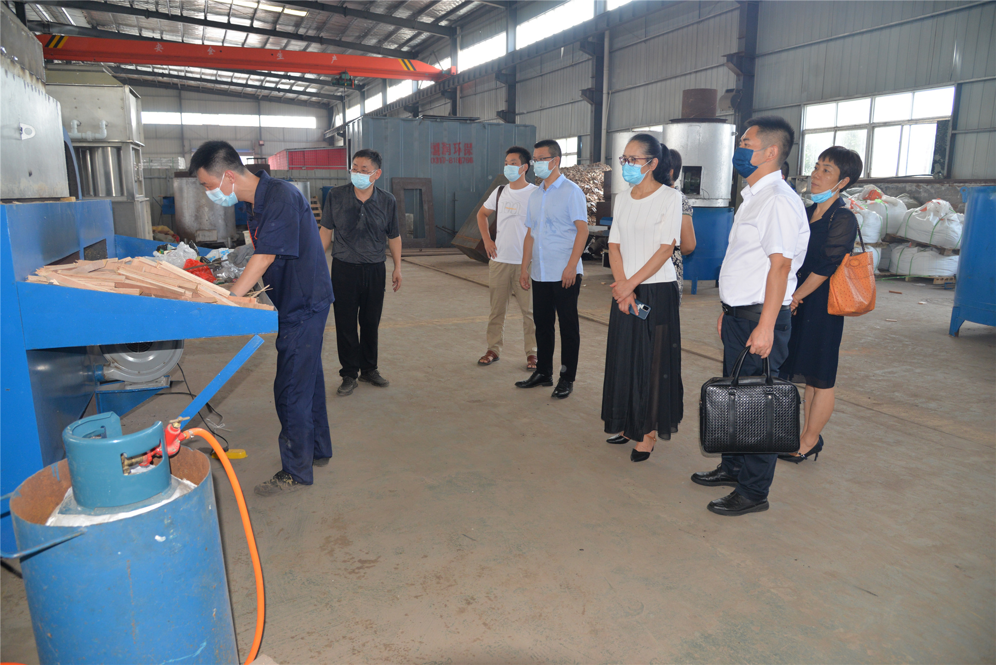 邵瑛(右1)一行考察垃圾氣化裂解焚燒過程