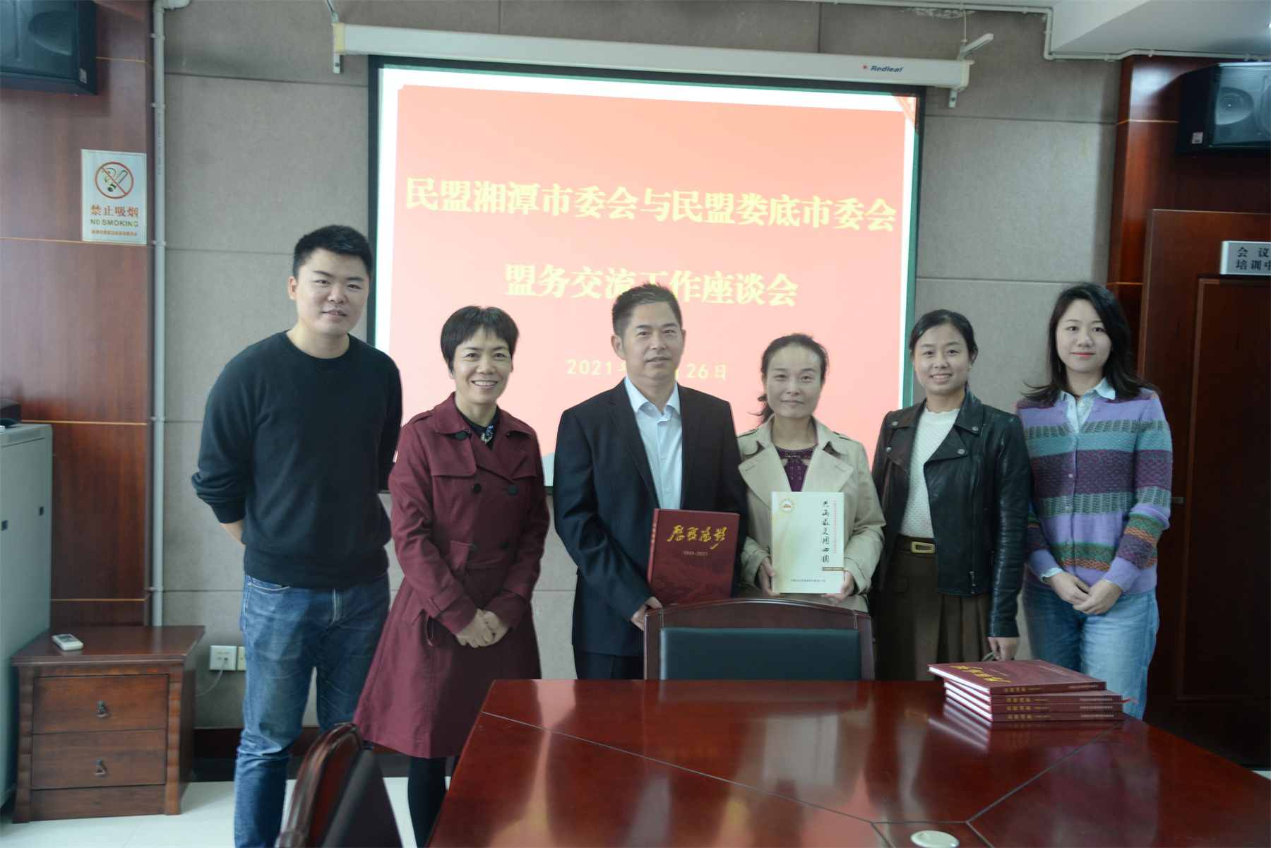 2021年10月26日,民盟婁底市委會主委傅小松率機關干部赴民盟湘潭市委會開展盟務交流,專職副主委王紅貴、辦公室副主任王姣妮參加交流。